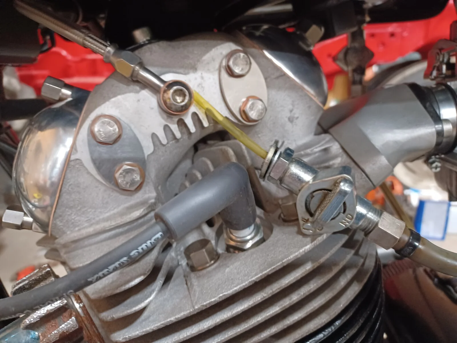 Set the timing and tappets and on the trailer Later Saturday, ran it at the race track Sunday, practiced, went well. Went into first corner of first race (hairpin) in second and got punted off....I watched it go up in the air, come down and land on the tank.....season over....