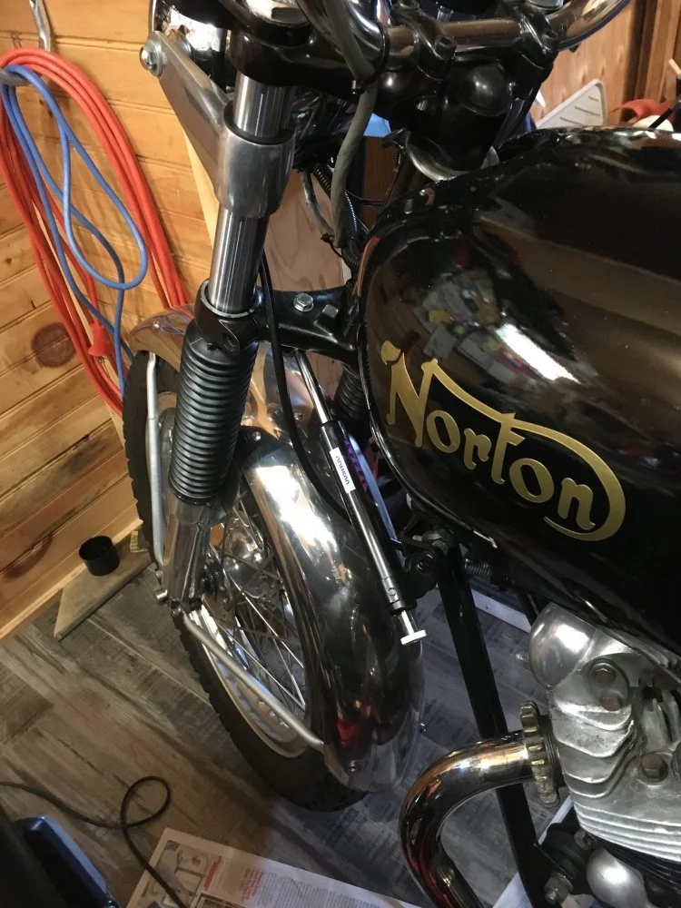Used to have the Norton steering damper kit on my bike for years and thought it was a necessary evil. My bike would shake its head if hitting a bump while leaned over or just shutting the throttle above 80mph. Once I got a link rod headsteady there was no longer any need for it. The bike is completely stable now. The cylinder is the same as used on Kawasaki at the time (70's). The factory kit uses an extra small bracket and bolt to stabilize the main bracket which connects to the flimsy downtubes.