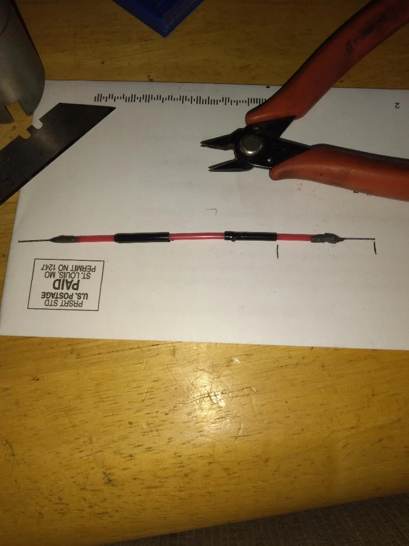 Never being satisfied with a single magic wand, I made a double so I can drill it out in stages for the least chance of breaking the bit or the wand while clearing the jet. The line you see where the tape is placed on the wand indicates the full depth of the port including passing through the jet. You also check the wand length once you're done drilling the jet with the paper so you know that the wand did not break off in the jet... Super important to know that what you stuck in the jet, comes completely back out of the jet... Here's my double wand below.