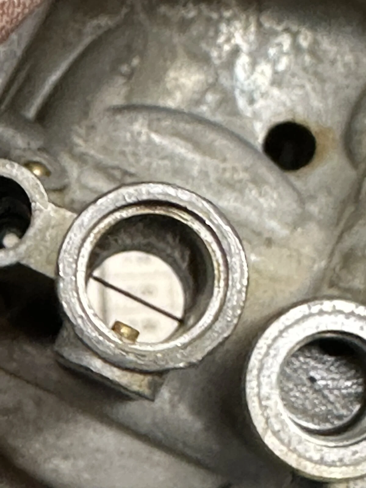 The tiny passages drilled into the throat that deliver fuel at closed/low throttle. They are FAR MORE likely to be clogged than the pilot jet.