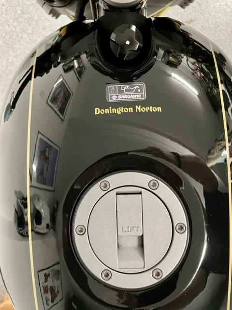 Looked at multiple locations for the clearly essential ‘Donington Norton‘ decal. Settled on the smallest of the decals, forward of the petrol cap.
