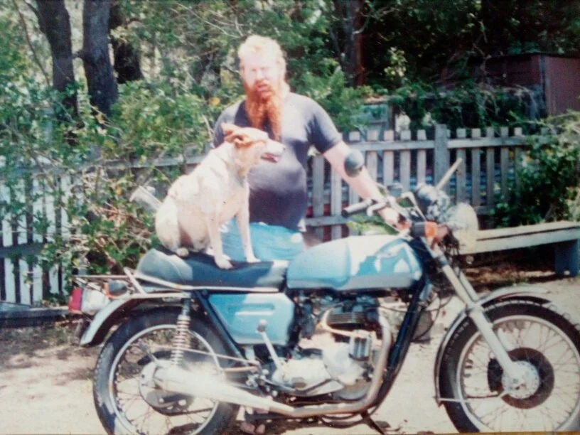 I had another red cattle dog in my younger days he was a good jumper and could jump high catching the old Frisbey he could do somer saults to catch it midair, he also like jumping on the back of the bike as well, here is a pic of him sitting on my old Triumph with me, he use to also hop up on top of my Land Cruiser ute roof while driving, some of the looks I use to get lol.