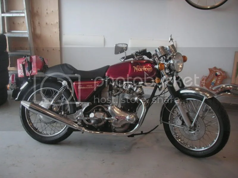 The front was achieved by ordering Manx stantions, which are 1 & 3/8" shorter than Commando. I also shortened the damper rods by cutting the top off and re-threading on a lathe, and also shortened the springs by cutting SQUARE with a angle grinder. I DID NOT, however, cut the damper tubes. I stayed with a 19" WM2 rim and used a 90/90/19 tyre for high speed stability.
