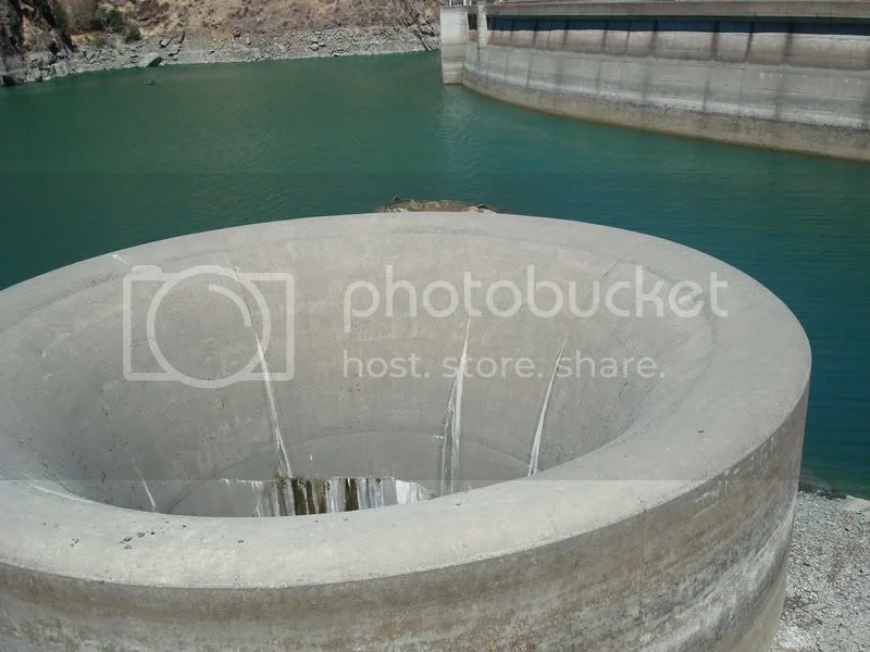 this is the 'glory hole', when the water is high enough, it drains into the huge hole.