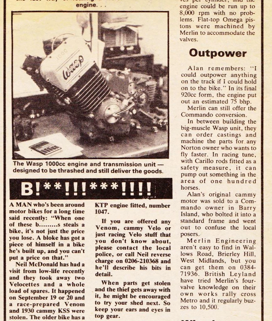 Well spotted Mat the top couple of fins of the barrel are trimed not to allow exhaust clearance more like to reduce weight (or as Peter said to clean up damaged fins),I think the one you pictured is the same set fitted originally to the Wasp sidecar if you look verry closely the top fin has more off than the second,As Peter also said "then put a decent set of barrels on it for the Earls court show bike" also to help cooling as the road bike would be used for much longer runs than the sidecar