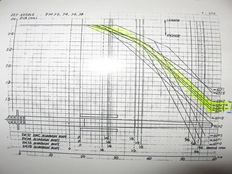 I edited by previous post about the jetting I have, looked in my note book and I had a 6DH3 needle but have since switched that out to a 6DH4.