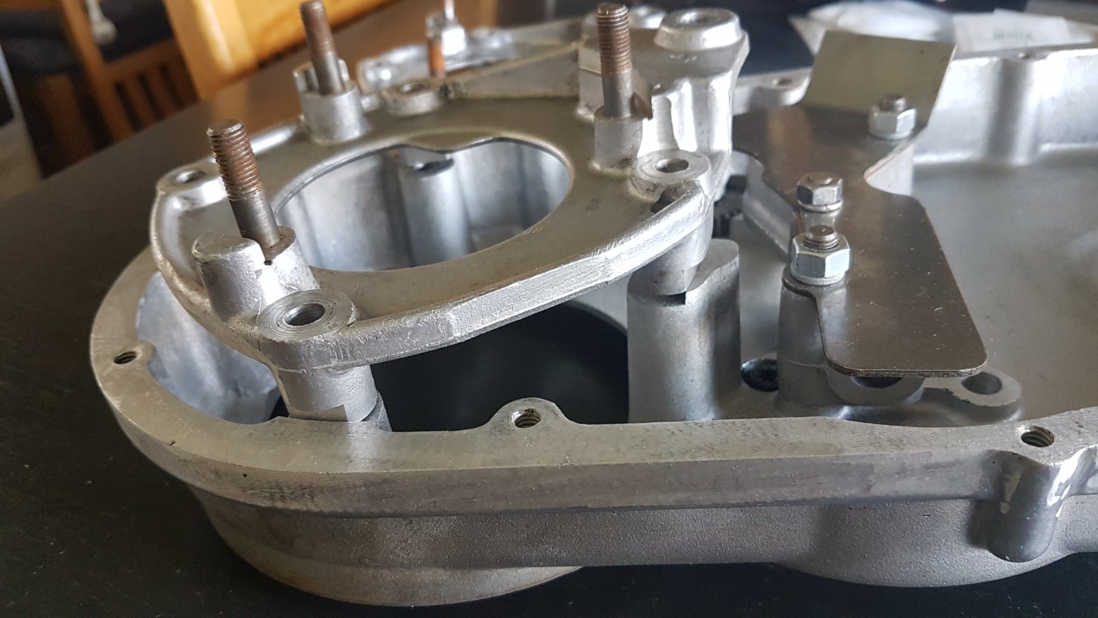 Hi all, I'm in the process of reassembling the primary chain cases on my Mk3 ES after removing them to drop the engine far enough to pull out the rear isolastic. When I tighten up the outrigger it pushes the starter drive gear hard up against the chain tensioner plate cover to the extent that it won't turn. Before tightening there is a gap of around 16 thou between the back of drive gear (this is the one that houses the anti-backfire ball bearings) and the cover plate but that closes to zero when the outrigger is tightened up. I can't think of anything that I've done that may have caused...
