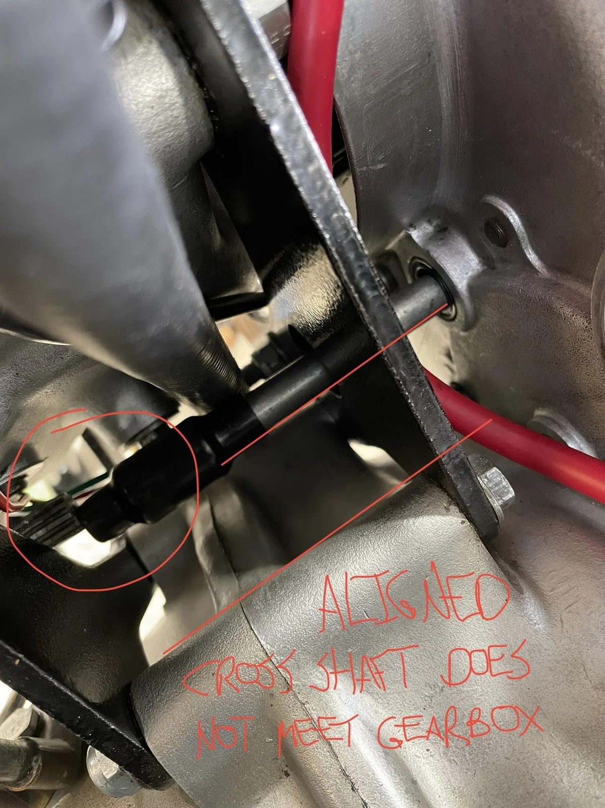 TTI eventually supplied me with a short gearbox shaft that i was able to fit with a Hooke Joint that i cut the splines in so was able to use a standard length cross shaft.