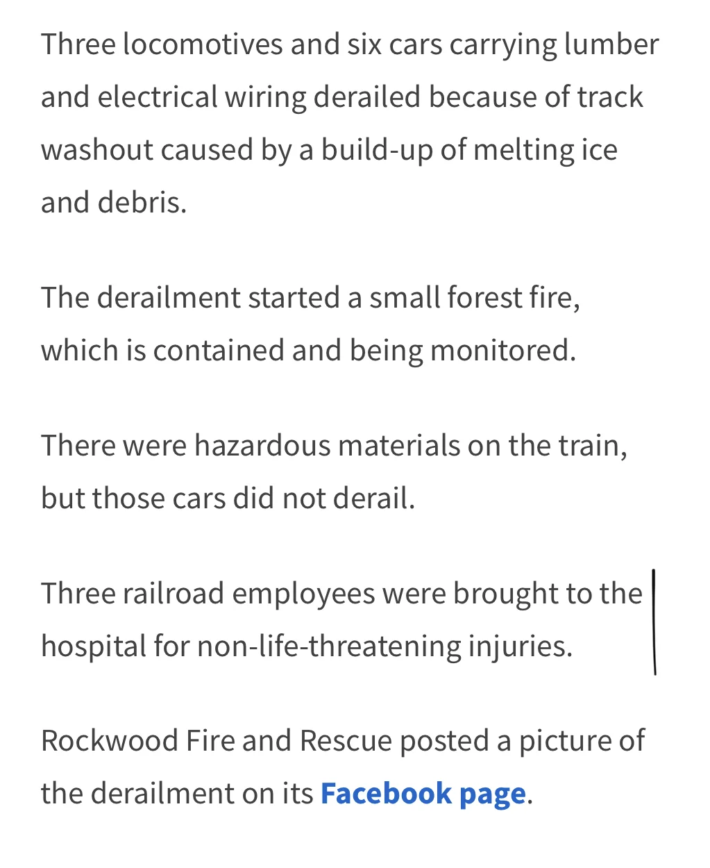 A train carrying hazardous materials has derailed and caught fire