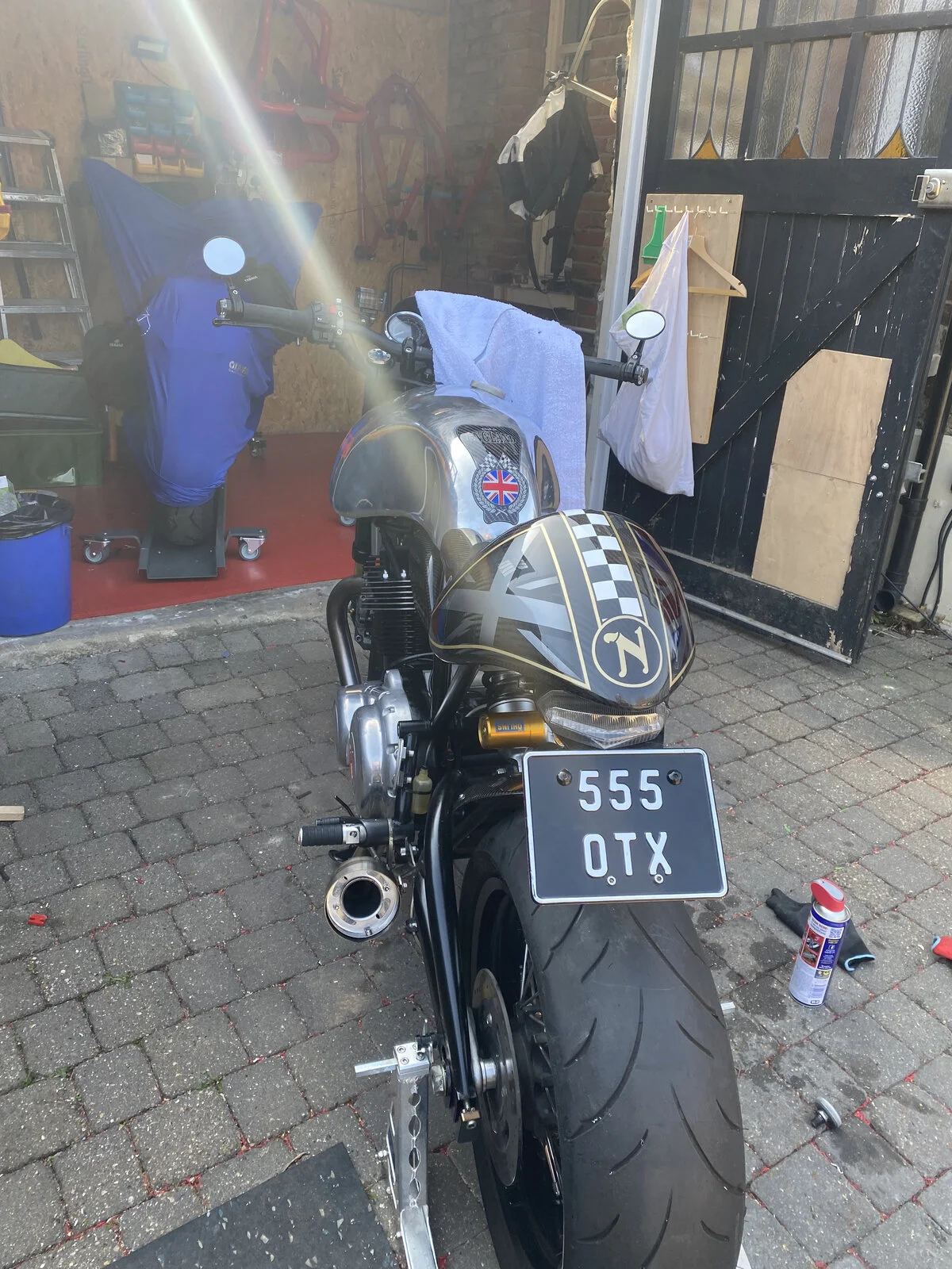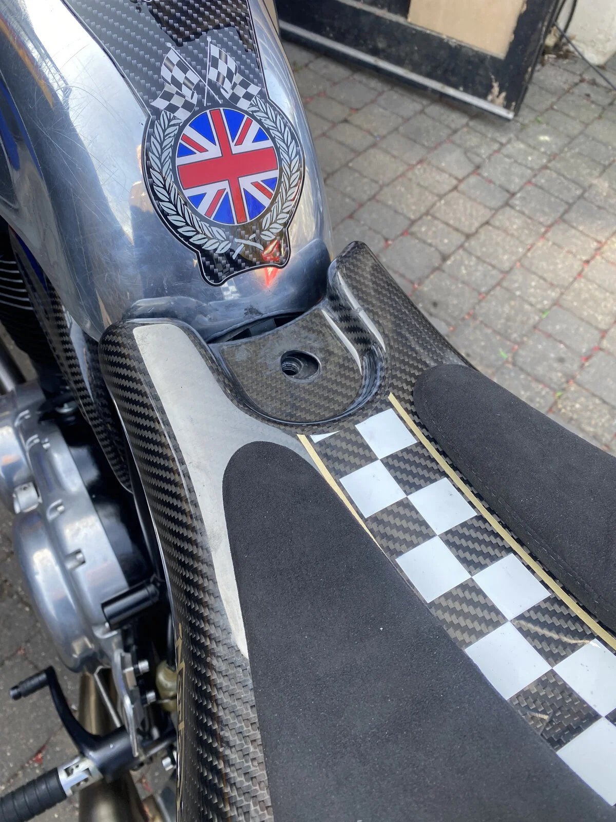 Since I had the bike on a stand and my tools out thought I might as well fit the seat cowl that I bought some time ago. Not quite a straight forward replacement and ended up drilling larger screw holes and I cannot get the front retaining bolt hole to match up. More work required with a step drill. Test fitted and I am happy with the look.
