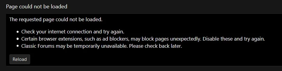 If I toggle back and forth from the current page to the desired page this message will appear half a dozen times or so, then the desired page will finally load. To go to a new page it's the same procedure all over again. This started quite awhile ago, perhaps 2 months.
