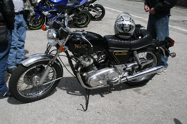 The rider's a nice guy, we had a long conversation about his bike. He's really into Nortons so I thought he might post here or someone may know him.