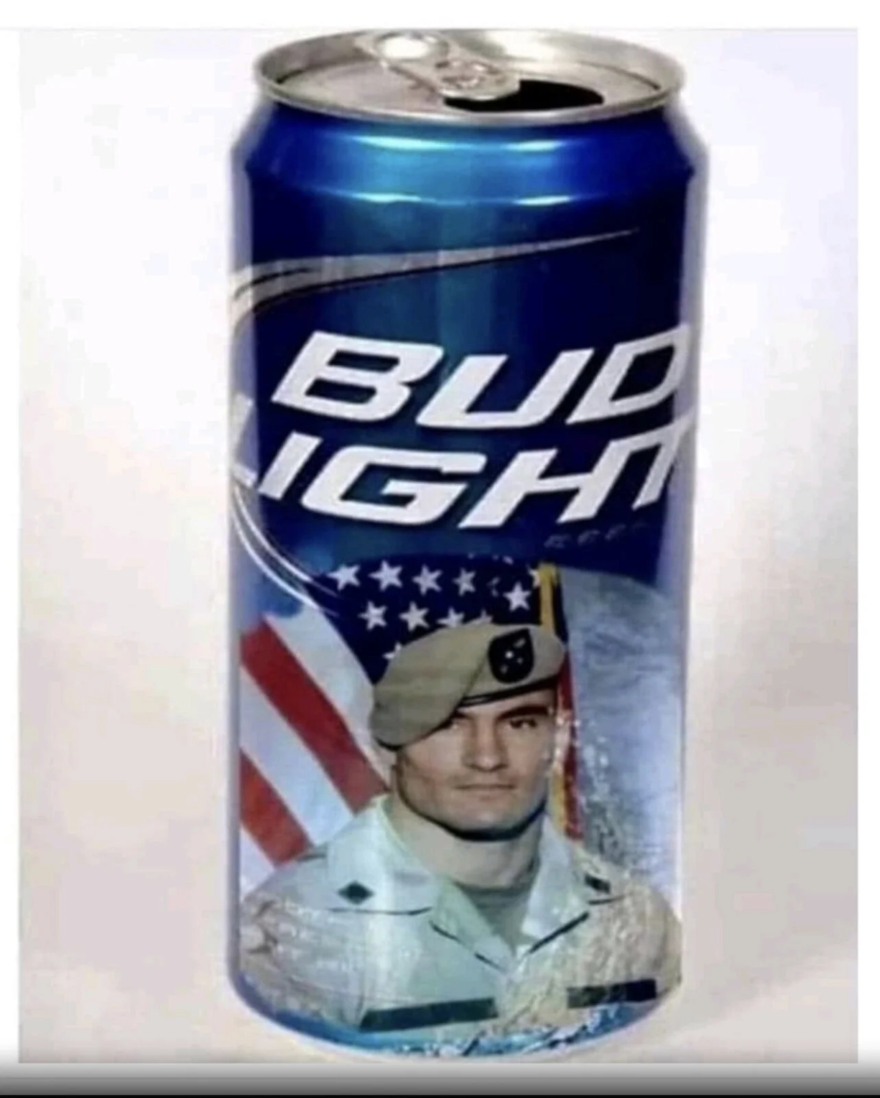 After-note: Really hope that you checked, wherever you got this picture from, that this young man is not a fallen soldier - before you put his face on a beer can!