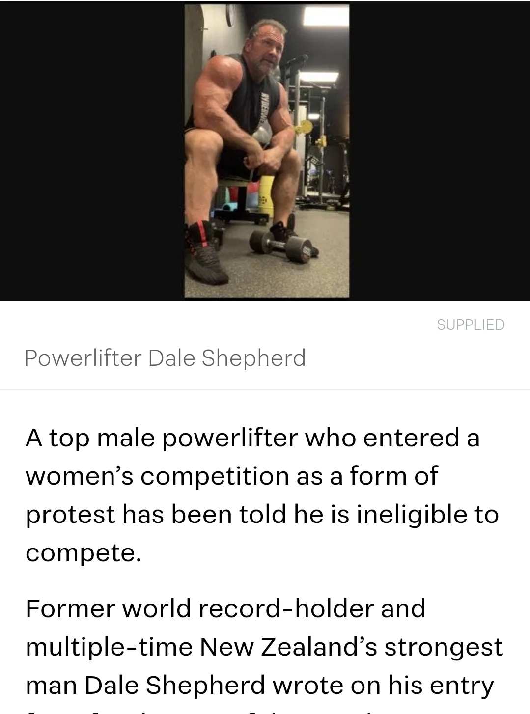 New Zealand’s strongest man has registered to compete as a woman in the Global Powerlifting New Zealand Day of the Deadlifts competition to protest gender self-identification rules.​