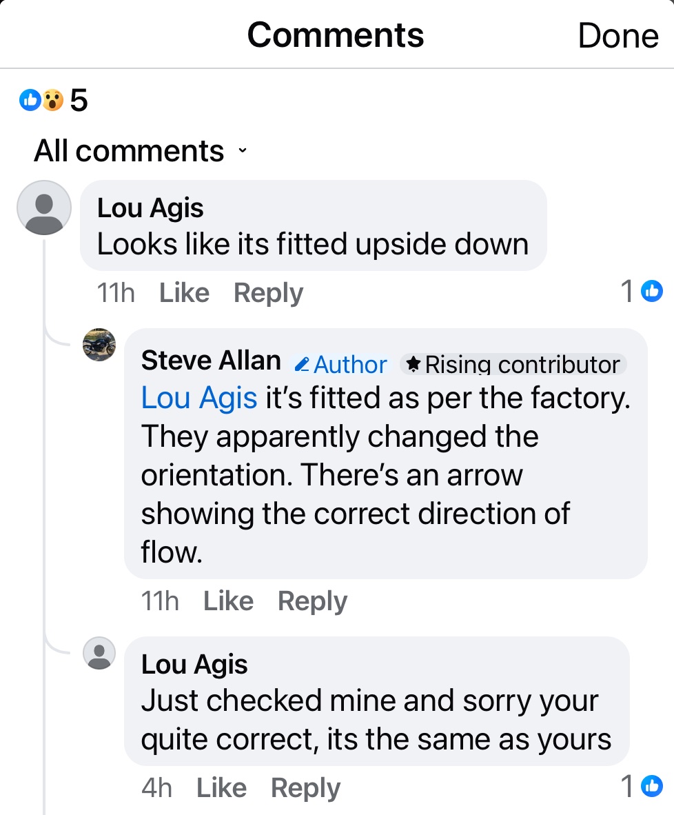 A mistake so easy to make that Norton (old’n’new) have been making it for many years apparently - with the vast majority of 961’s currently sporting this filter upside down
