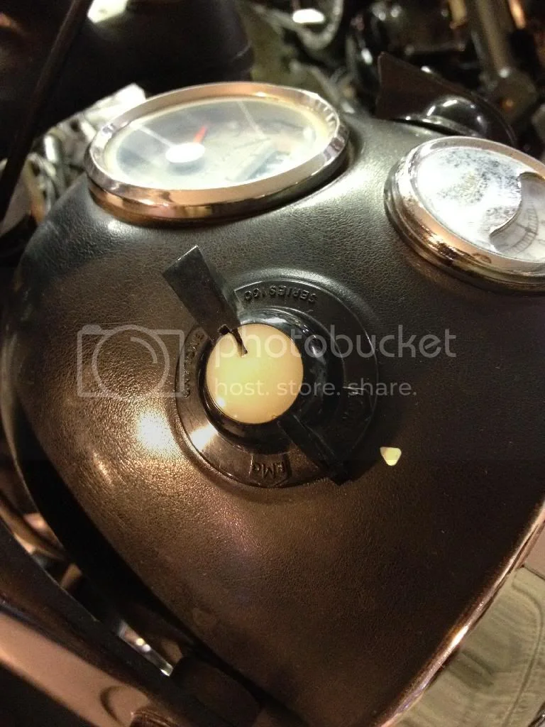 As you may have noticed, the Electra uses primarily Wipac electrics except for the starter (Lucas) & turn signals (Hella). The Electra came with two "Grip tip" indicators which were made by Hella, also known as "bar end winkers", or "ox eyes". These were most common on BMW motorcycles of this era. I had them on my Electra & my slash two BMW & I like them a lot, as they each have a forward & rearward facing lens, so you only need 2 indicators to give 4 way viewing, and they don't vibrate like the Lucas stalks. They are still available as genuine Hella, or you can buy oriental copies.