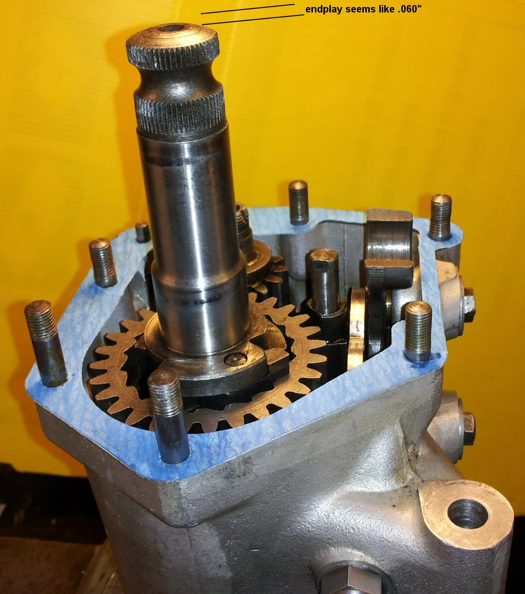 Assemble with end cover showed about .060" kick start shaft clearance or end play......but I had not tightened cover with nuts.