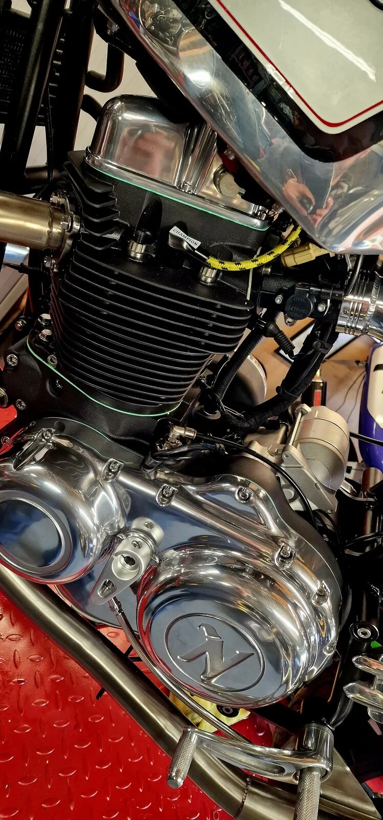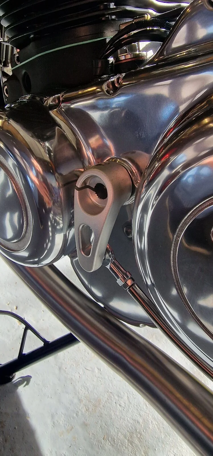 Stole Brummy Nortons idea for the ball bearing to block up the vent hole on the starter motor, over the old smudge of rtv. Also stainless rose jointed the shifter rod.