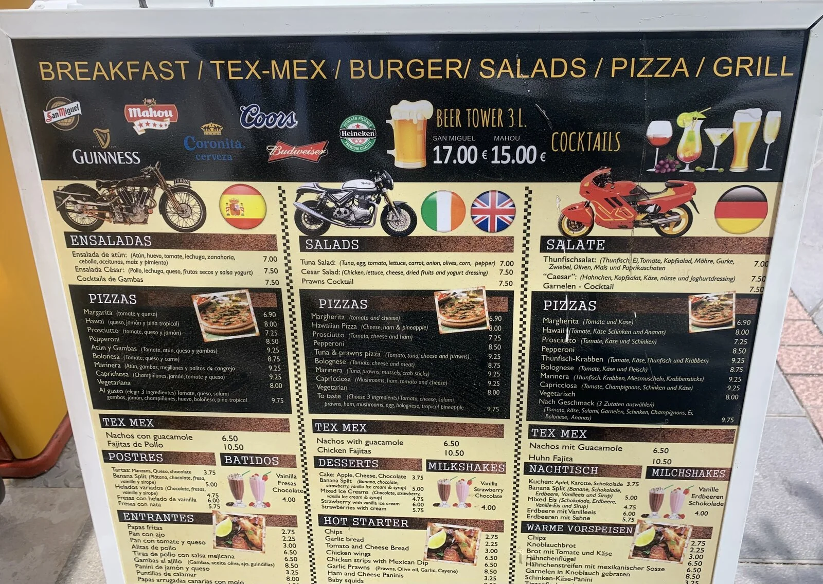 Sweet ! Down in sunny Spain .Currently lording it up in Lanzarote atm , mooching along the strip my brain ( which is wired to search out images of 961,s) suddenly became aware of this lovely Manx silver 961 on the menu of this Spanish seafront bar , no doubt there paying a royalty for the privilege ( prob not ) or could face a damning “ Cease & desist “ order ??? View attachment 106968