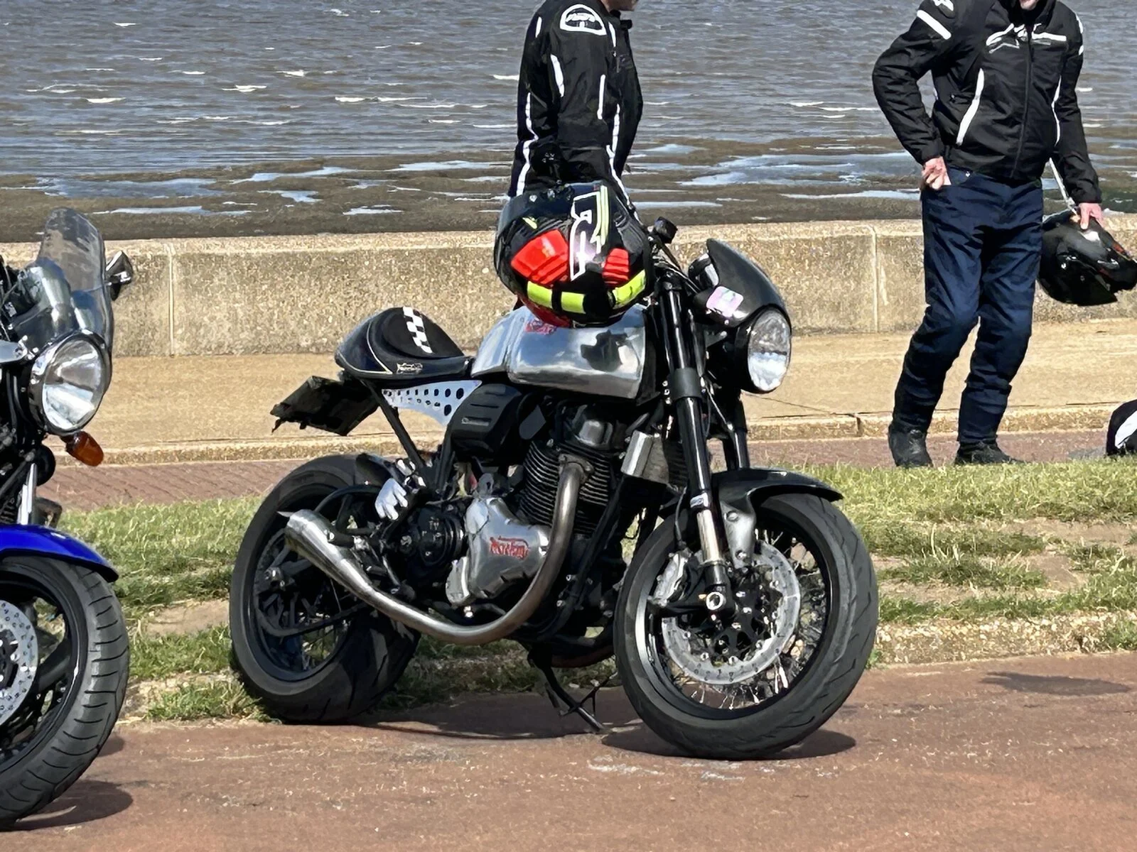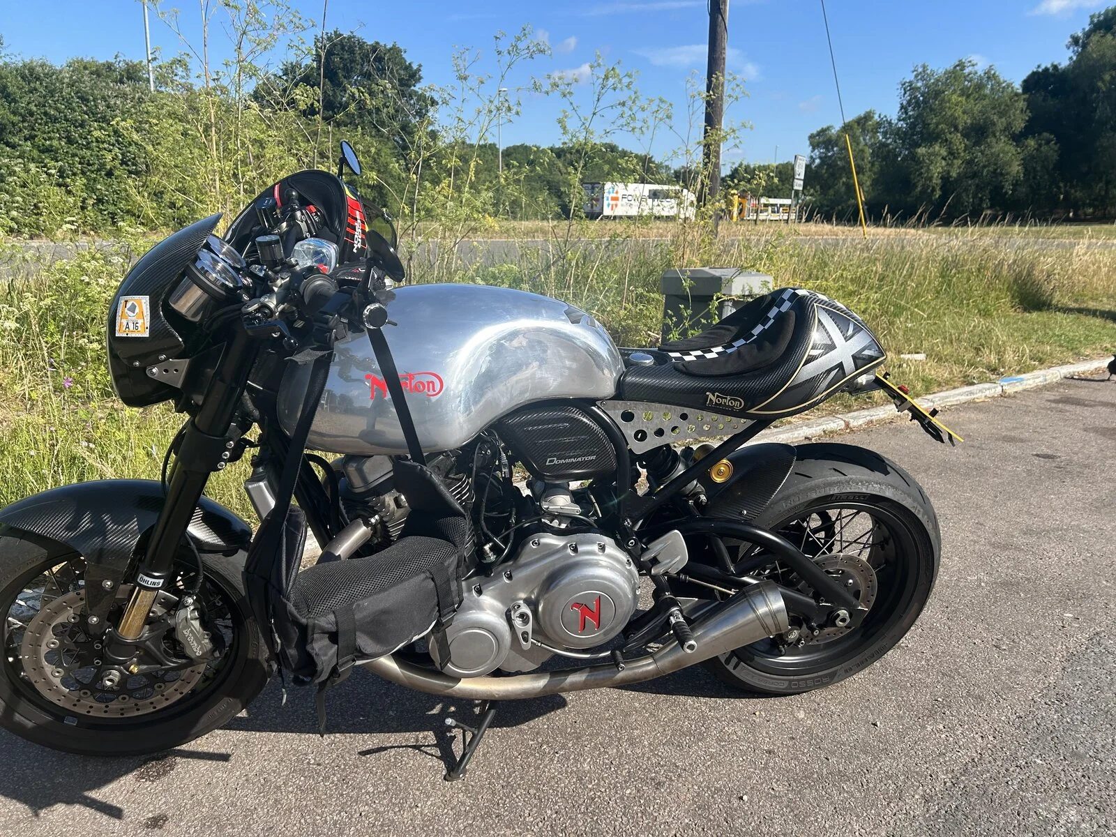 Resting (deservedly) after a 200km thrash! 150km is normally nearer the max so my back feels like I’ve spent a week on a testy camel with a bad limp!o_O Bike didn’t miss a beat as usual - bloody unreliable these Donington Nortons!! Baring her ass to receive some nice Rizoma indicators tomorrow!