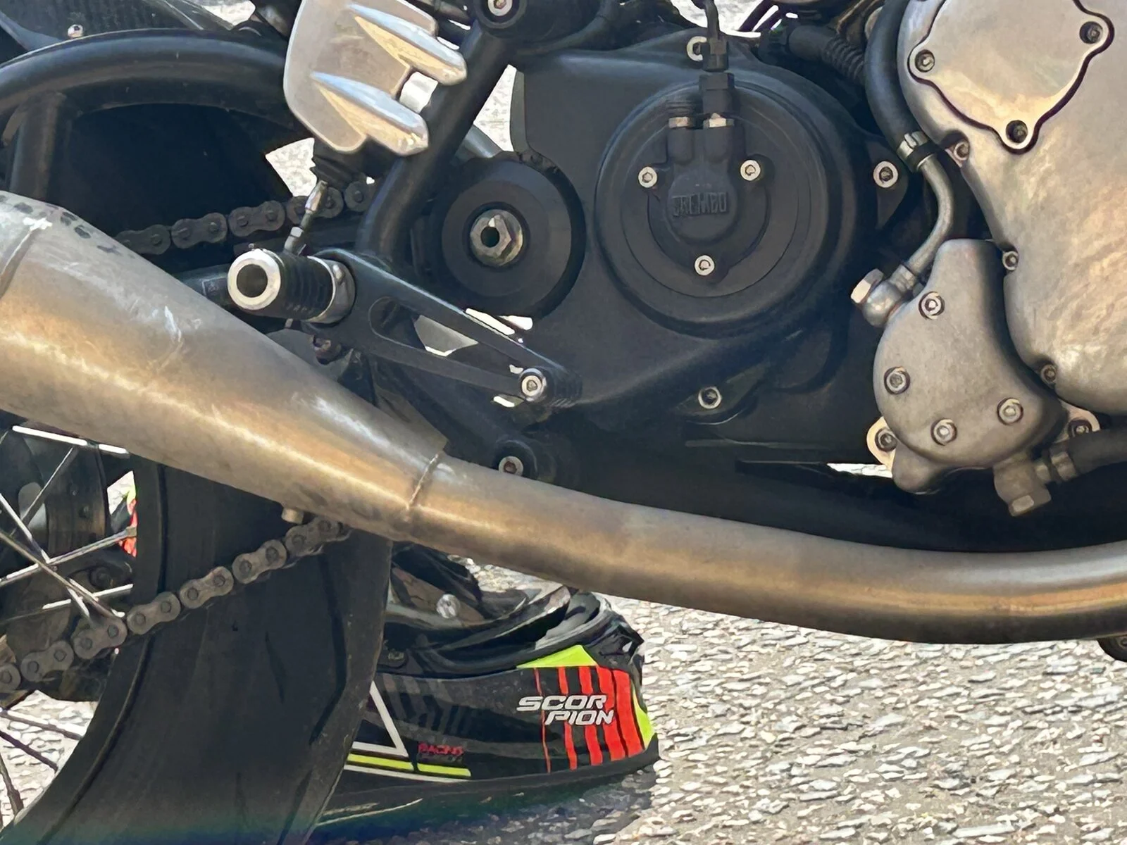 Hi Tony Sorry I ride normally one my own. This just happened to be Hunstanton in Norfolk which is a regular bike hangout especially on a Sunday I have fitted two separate baffles to the megaphones. This tones it down just enough that the drone does not effect my hearing, maybe!!!!!