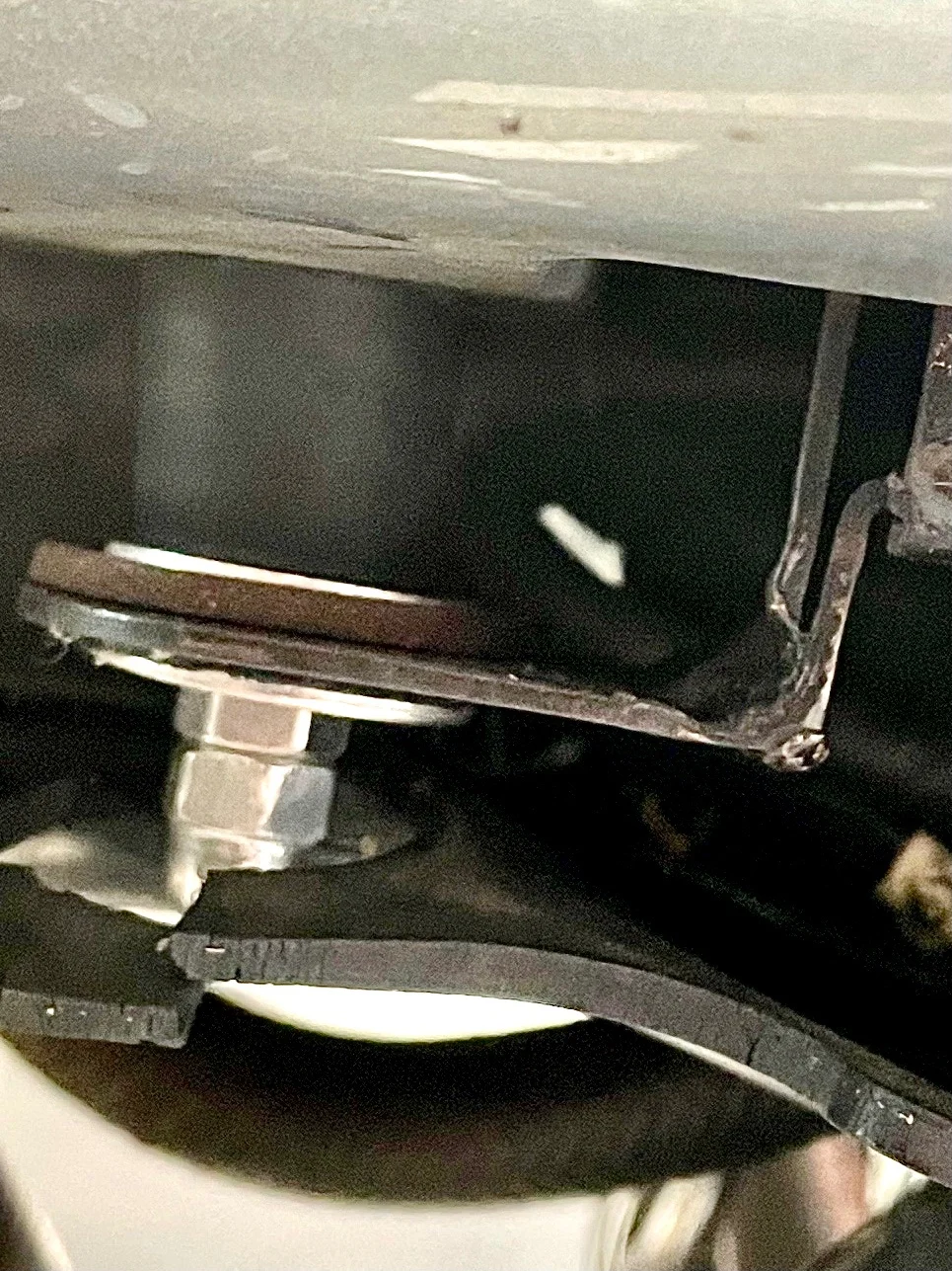 I think the brake pedal mod is because this is where his foot naturally wants to be. It may also give a better purchase with lever and toe peg together . I may try this .Gary’s frame is cracked in the upper main tube cross member - 360 degrees. I’d have been stripping it down and looking for a good welder. He’s engineered a rod through the footpeg hanger a-frame/frame cross member and included an inner adjusting nut and outer locking nut (I think) to pull the frame together. Think I’d still want to get this welded. He has two other 961’s, so has options.