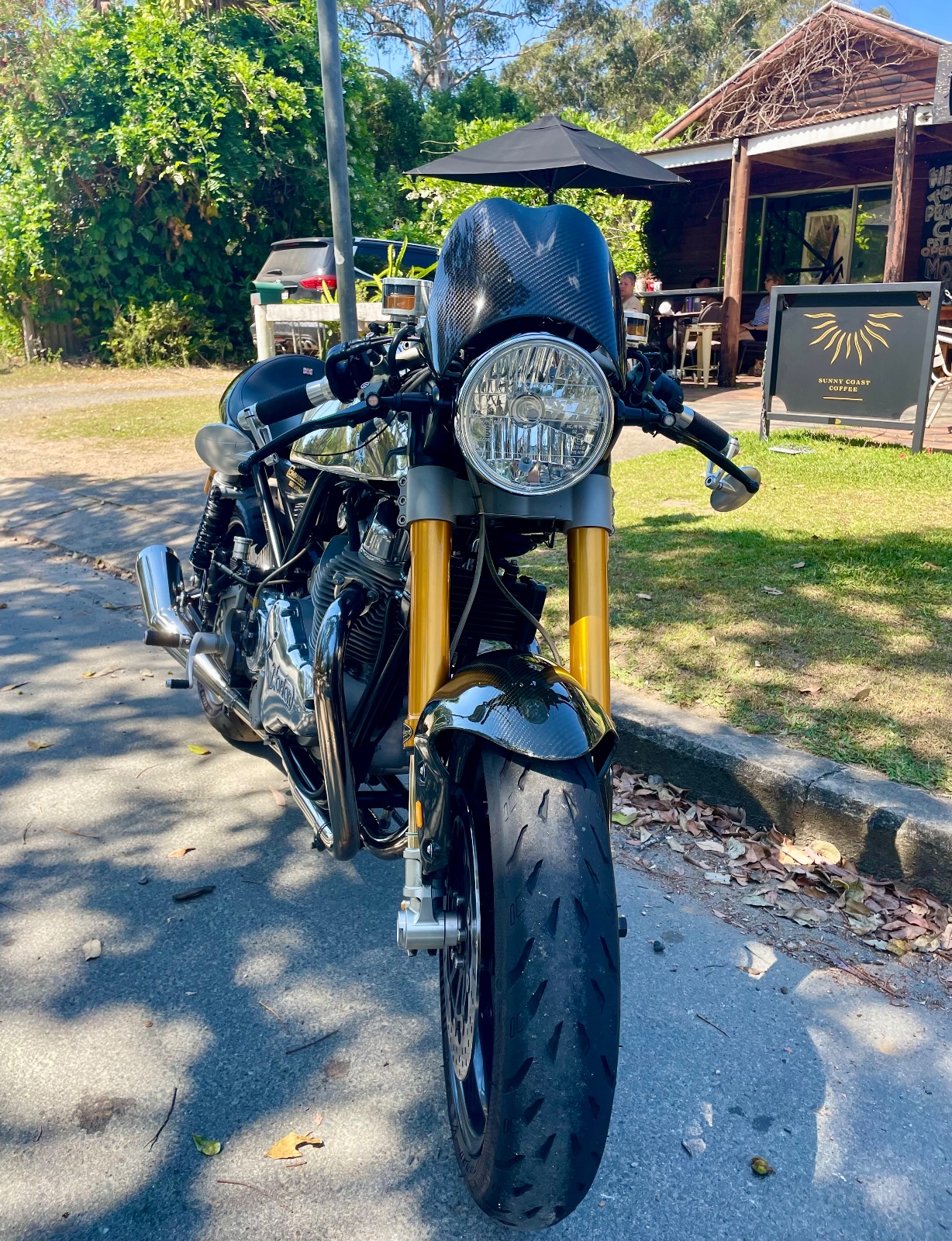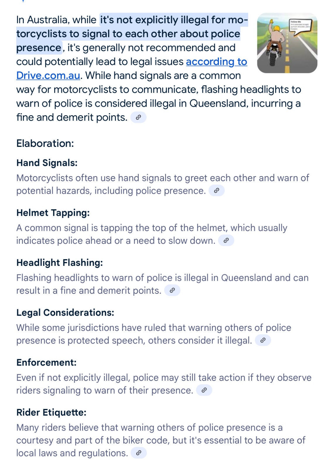 One of which Andy here gave the ‘police ahead’ sign to before realising it was an undercover bike cop - unmarked bike, police helmet and comms. Whoops, think that might be illegal!