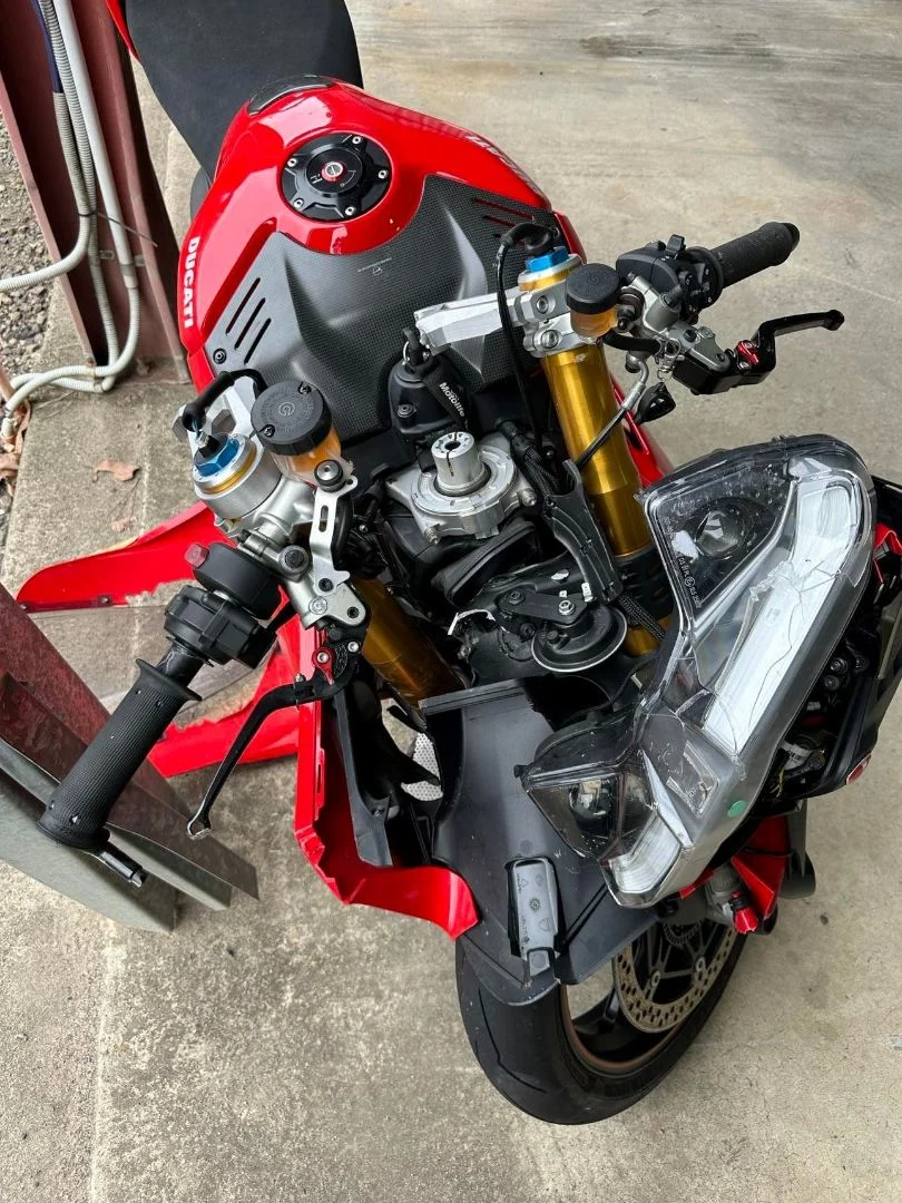 Ouch !Service, new boots (Michelin Power 5’s - to replace Power RS) and billet Rizoma rear master cylinder. Looking forward to scrubbing in the new tyres when it eventually stops raining!!