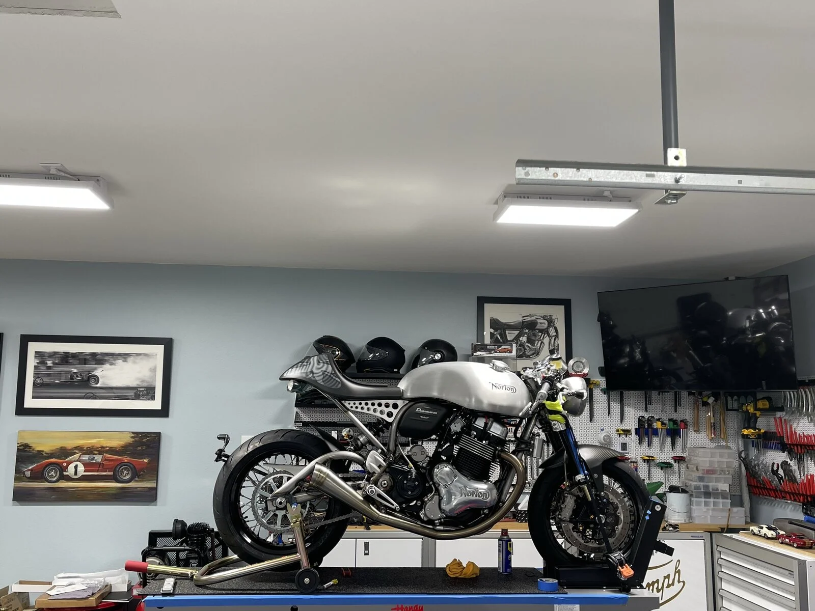 I decided to take out the pipes out for ceramic coating(the end mufflers will stay chrome) and the starter, clutch cover and oil pump for a grainy powder coating.