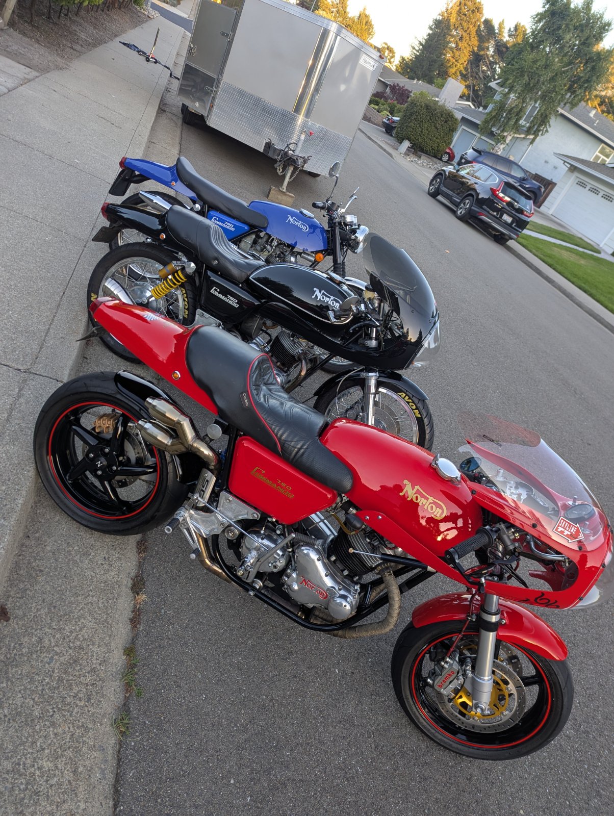 That 850 in the front has a beautiful paint job !Red, White, and British.... (hope everyone will excuse the Triumph intrusion) all 3 are original paint bikes