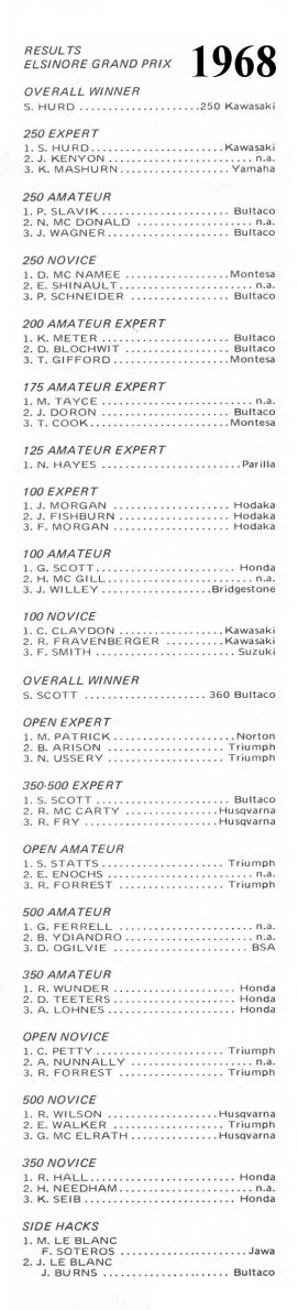 Mike won a lot of well known races during his career. He's in the District 37 Hall of Fame and is a legend in the San Gabriel Valley MC club.