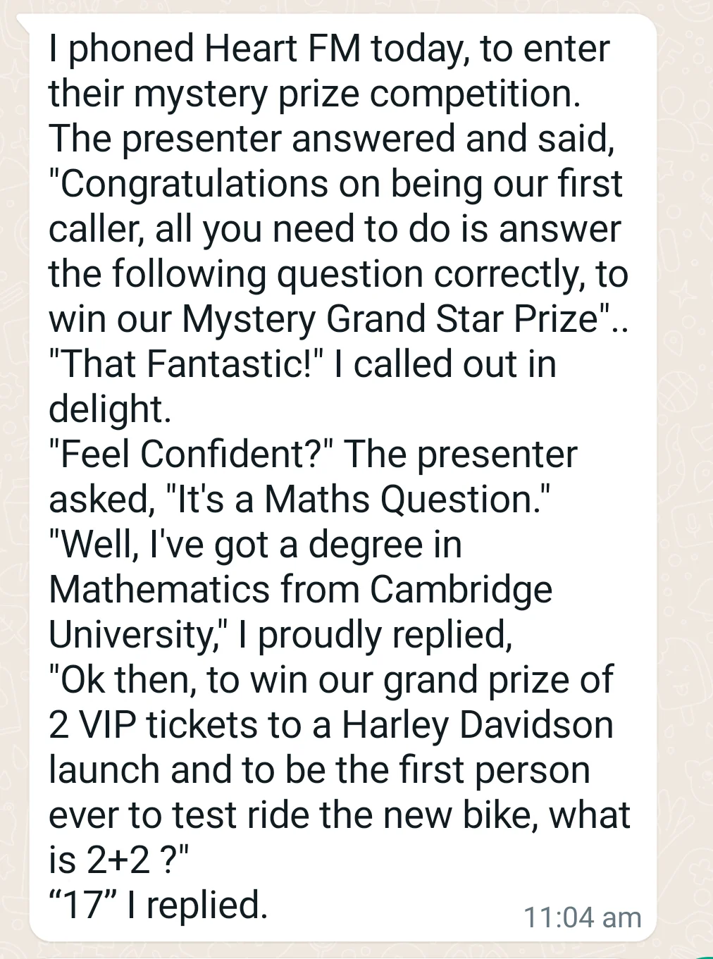 Please someone explain this last joke posted , ‘bout the contest , just too backward a life to get it and I do love to laugh …. Thanks!