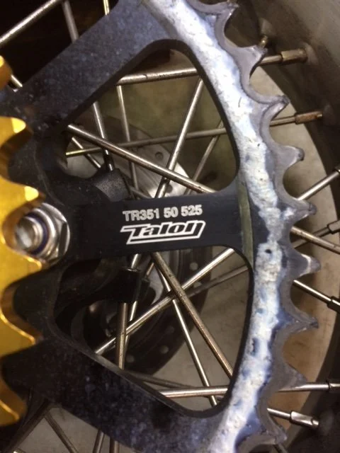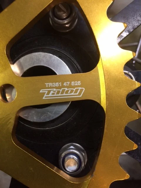 Here I want to show I have successfully sourced the TALON rear sprockets in a different size 47 T . The Gold color is just a bonus and matches the shocks and forks now ! Also please notice the smaller diameter which leads to my next improvement.