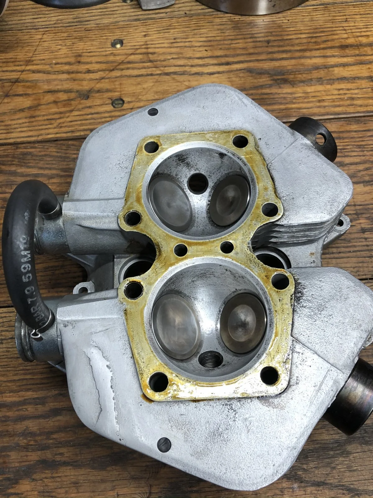 The head itself was in great condition, no real seat recession, nice smooth squish area, no sign of grenading, etc. I had assumed bad seat recession as I thought the valves were to ‘high’. Turned out the pushrods were odd lengths. So I put NOS ones in I had in stock. And more Wellseal! I also used Wellseal on the copper head gasket after I’d annealed it...