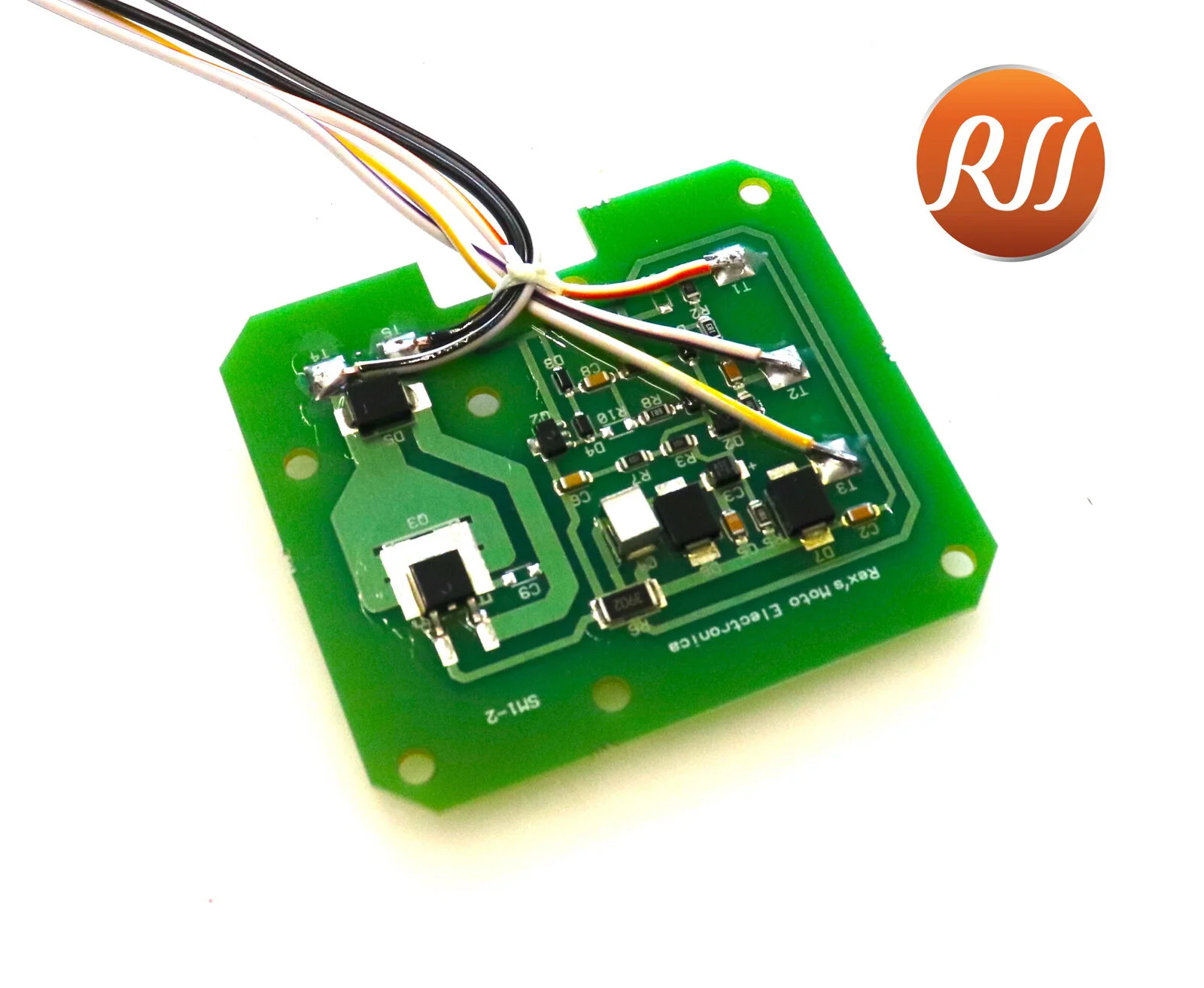 Is that the Rex's circuit board you refer to?I use NGK 5K ohm resistor caps, NGK BP7ES non resistor plugs and copper core non resistive wire with my updated Lucas RITA ignition. Works great.