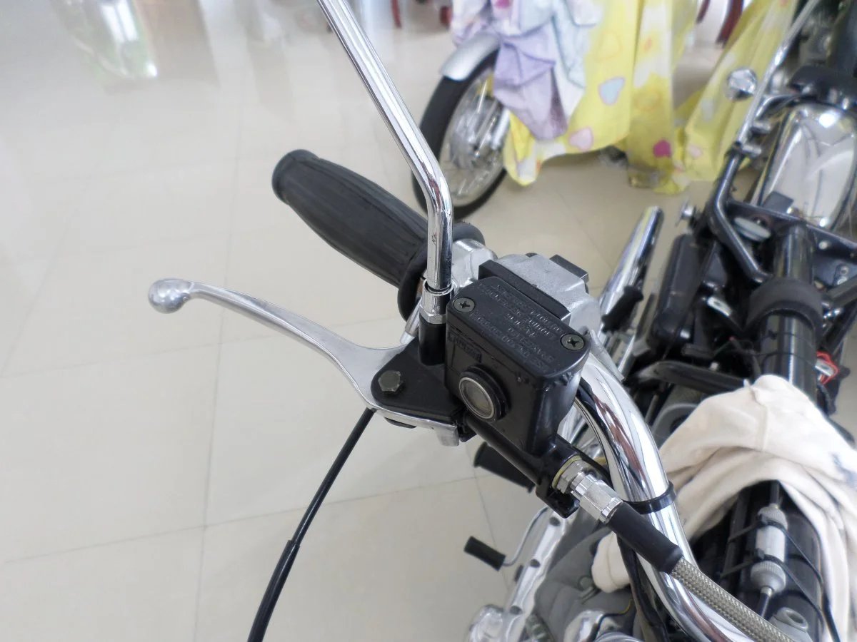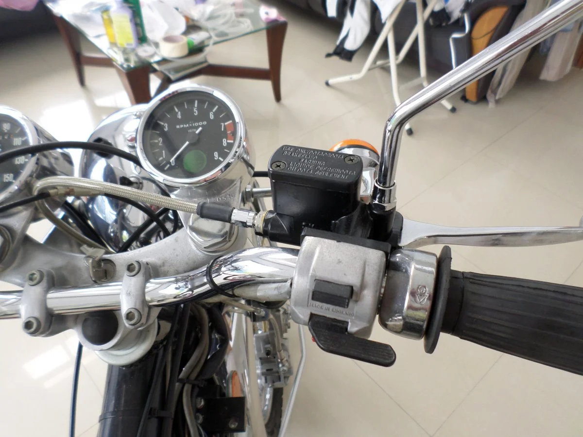 So like I said it's an RGM disc, a Yamaha V-Max Sumitomo 38mm twin piston caliper powered by an 11mm Nissin master cylinder from a Honda Silverwing 600 (which to my disgust I later found out is a scooter). The reason I chose that caliper apart from size was that the pads have something like 55% more friction area than those in the standard caliper.