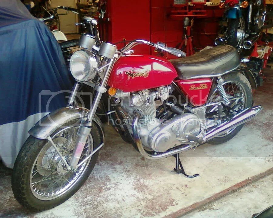 This has been a very long journey with many disappointments along the way and a few dollars as well. I bought the Norton from my cousin who wrecked it and the deeper I got into it, the worse it was. I took it all the way down and had to have the cases repaired, two frames, etc, etc. You guys know the story. There is little left of the busted up bike I bought from him but now a totally redone 750 with J&S Carbs, quarter turn racing throttle, Pazon ignition and the list goes on. He told me it runs liked a raped ape.