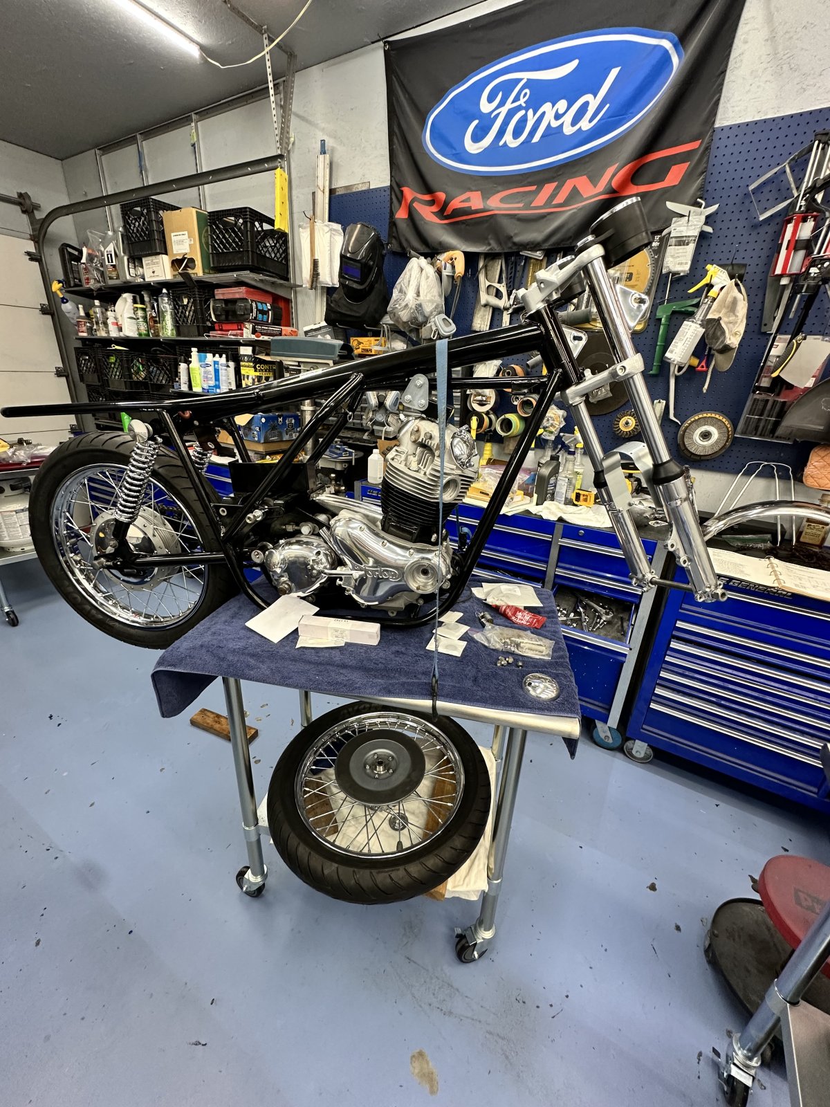 Sorry, It's been slow but steady progress. This is actually good timing as I was going to be posting my completion very soon. I'm currently fighting the cross pipe exhaust alignment but I'm getting there. Having issues with the gap on the kick starter...