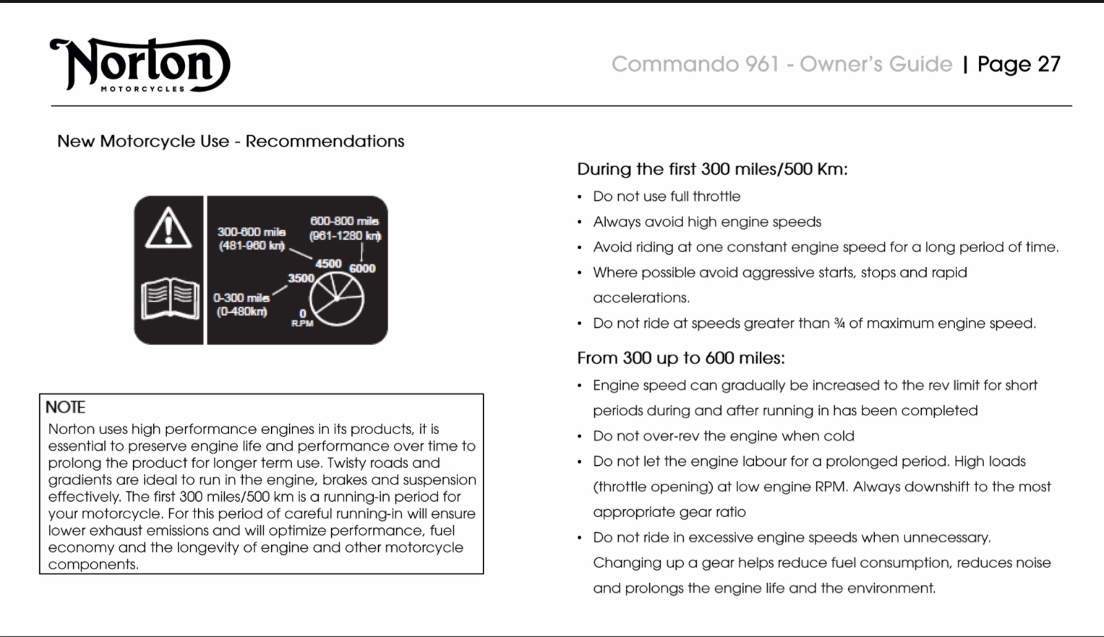In the good(?) old days you picked your bike up from Castle Donington Norton and if it didn't break down you rode out your 'break in' miles putting up with the muted gurgle of an exhaust being overtaken by scooters, bicycles, pizza delivery riders etc. Eventually that hallowed day arrived when you delivered it back to have the cat taken off, the straight through pipes fitted and a remap and you rode away, on what felt like a completely different bike. You still get overtaken by super-scooters and electric pizza delivery riders but at least it sounds as though you could go a lot faster if you really wanted to......