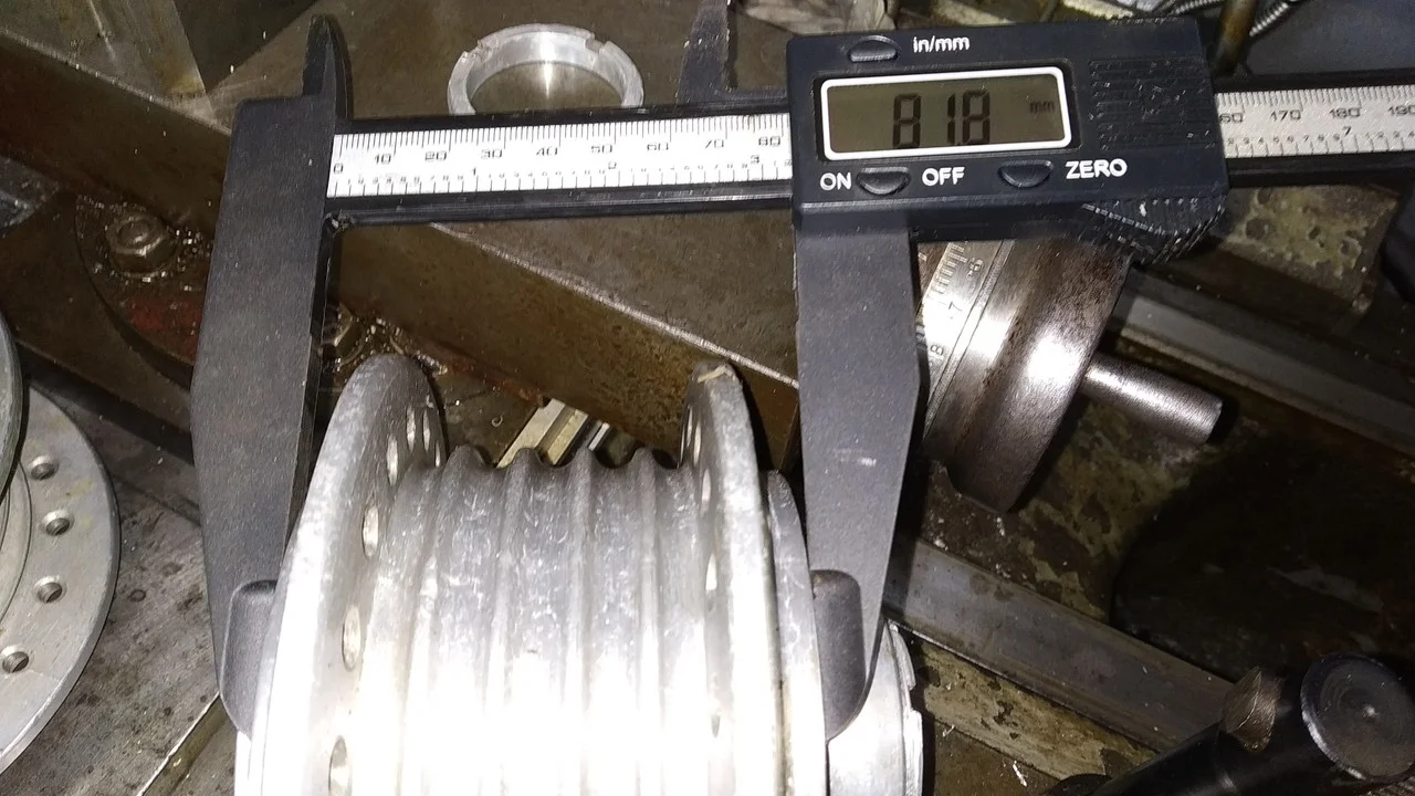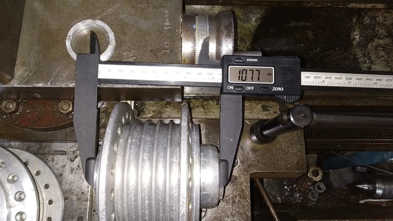 You need to do this all in a progressive process, spacing over the caliper as needed to keep the disc central in the caliper! Measure, set next dimension, machine, measure, set next dimension.......you may need to space teh calipers from the mounting bracket!