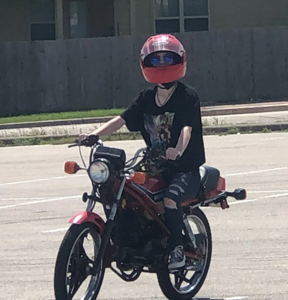 What is wrong with this picture?Speaking of Simple Pleasures, I FINALLY got to teach one of my kids to ride! My wyfe taught both my boys to ride, so it was my turn today when my daughter learned to ride her Honda MB5 that I restored for her last year. She did GREAT! She does need to practice slipping the clutch instead of popping it, but the little MB5 was very forgiving with a tad high idle I can't seem to tame...