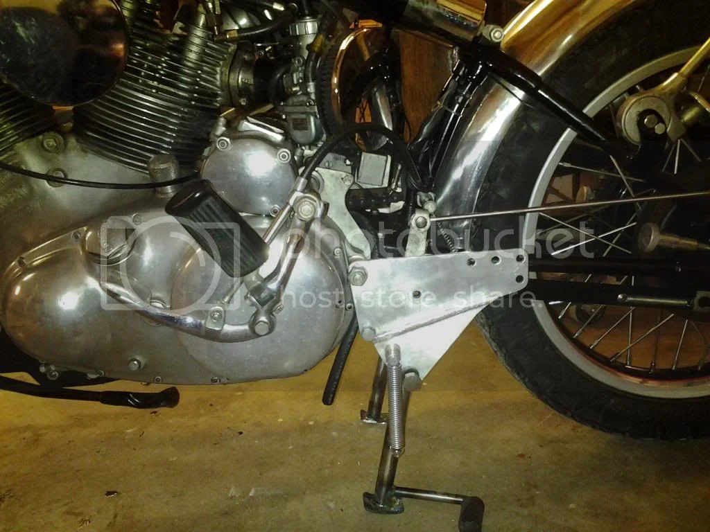 I'm trying to figure out why the centerstand on my 850 won't actually lift the rear wheel clear of the ground. The PO had welded a piece of 5/16" rod to the bottom of each foot to lift the bike higher...and it still didn't clear the ground with the stock wheels/tires. The piece of rod also made the bike very difficult to move onto the stand because the foot would roll to the point where the rod was across the foot and then there was an abrupt step which required substantial effort to get the bike up. The stand is the original 850 stand and though the bushings/holes are a slightly worn, it is not enough to matter. So, I'm wondering if there are different extended lengths on rear shocks that may be allowing the swing arm to drop lower than the originals did. I have Hagon's on the bike.