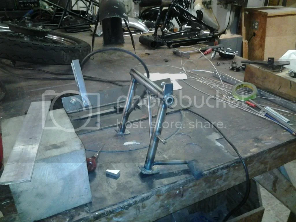I removed the PO's piece of rod from the bottom of the stand and tried putting some shim material on the part of the CS that butts up against the engine plate to "stop" the stand, figuring that would raise the bike. It did but in order to get the rear wheel to clear, the shim has to be so thik that the stand cannot rotate "over-center" and therefore won't "lock" in place.