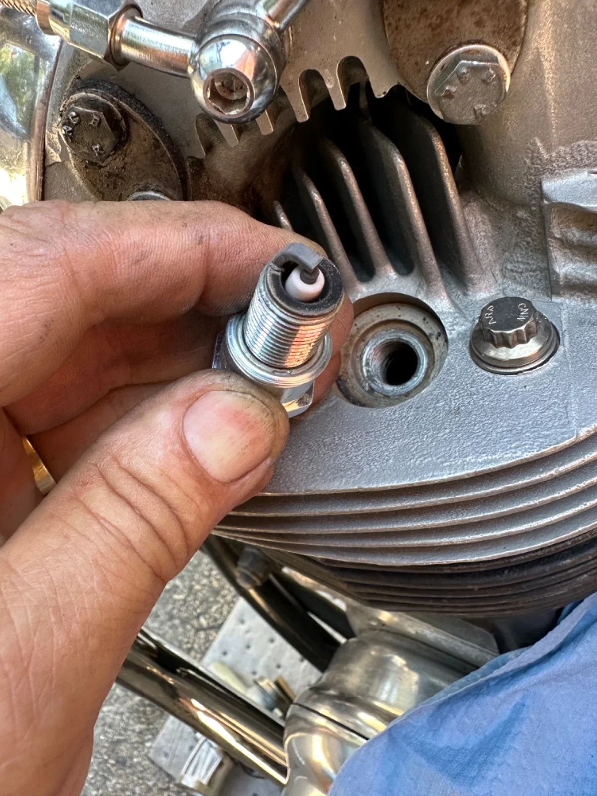 If I had plugs which looked l like that, I would look to see if the rich carb was touching the frame.A while back I installed new 34mmm Amal premiers on a 750. Originally I had problems starting and lean mid. So changed needle and got a immediate improvement. Goes down the road great accelerates without any hesitation. Starts 1-2 kicks if I do my part.. So today I came down the street about 30mph, hit the kill switch. Pulled the plugs and this is what I saw! Both carbs are set up the same. They were synchronized with vacuum gages. Do you think the cause is Boyer ignition or they are not synchronized in the mid range? Thanks