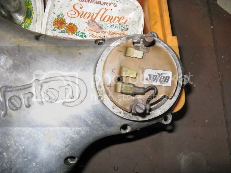 There is also an alloy ring with it which spaces the points cover out, its wider than the round opening so looks like a fin when installed, don't know if it was a rudimentary cooling or not but the points cover had no extra holes drilled into it.