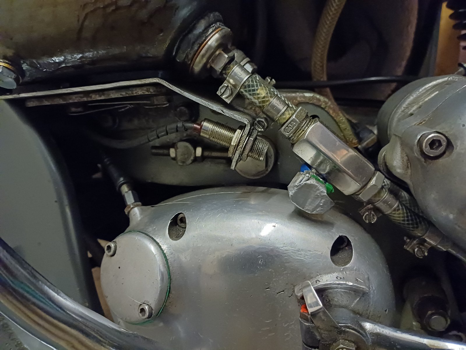 1962 650 SS: Magneto Guys tap AND NYC Norton Sump reed valve breather.