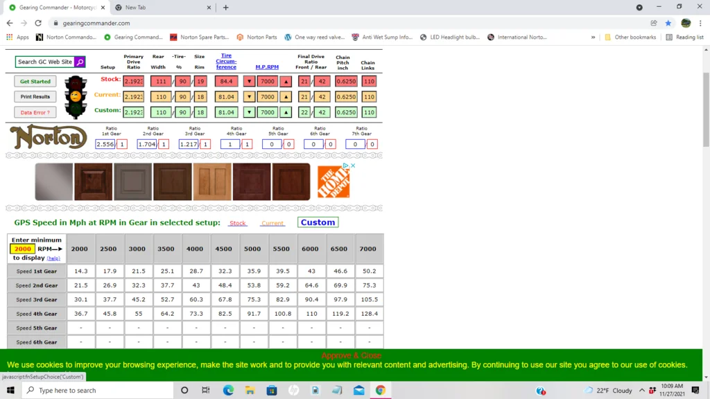 Last, I have a 110/90 X 18 rear tire that is almost 2% smaller than the stock 19" rubber, so increasing the sprocket tooth count by 5% wont have a significant affect on acceleration but will reduce RPM somewhat..