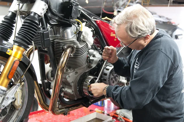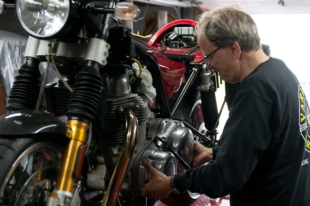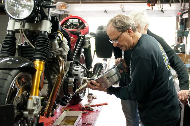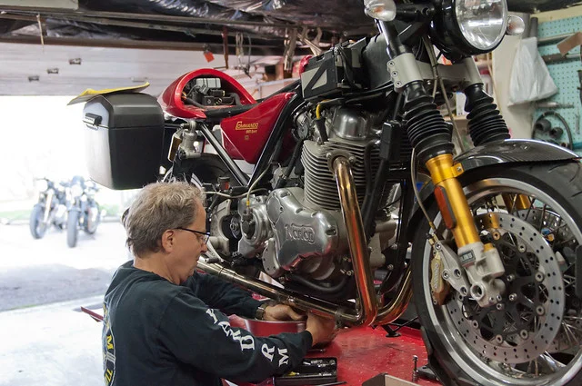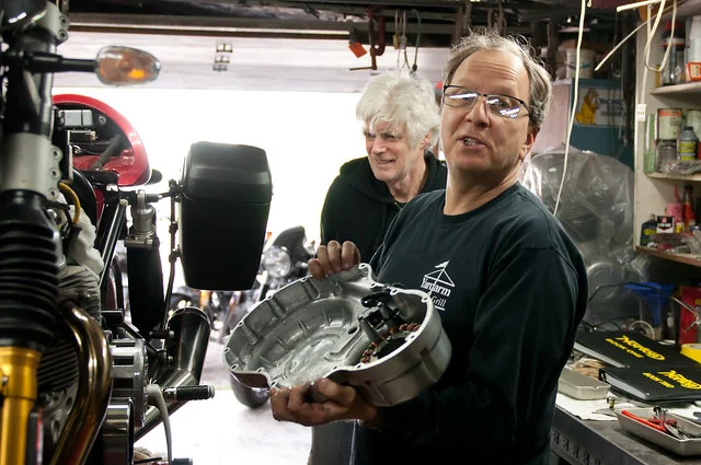 Tony and I traded bikes for a short ride and my dad followed. My bike has clip-ons, Tony's has bar risers and panniers. Amazing how different the same bike can be. Oh, and the sound of the three bikes together... music..