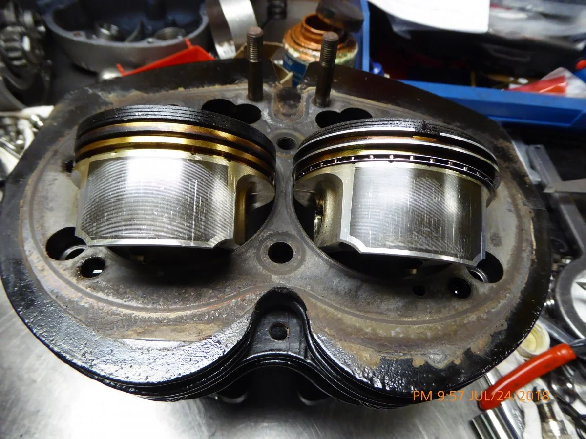 Until I got my mic out. The skirt on the left piston had collapsed by .010" so one piston was at .005 clearance and the other was at .015. Both were originally installed at .0045 clearance.