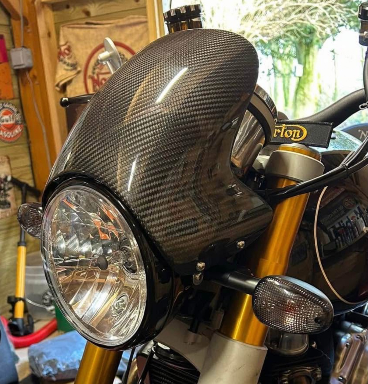 Nice, Thanksa std LM1 fairing wouldn't fit the 961 forks, as its made for a narrower yolks and forks. I have fitted a LM1 fairing to a more recent Guzzi and it was a pita.. as the mounts had to be remade. BTW I think a fairing from a Kawasaki Z900RS would work well. I have a carbon fibre one on another project. For a half fairing, I feel the original Ducati SS900 Demo would work well, the lines of the 961 remind me of my old desmo.